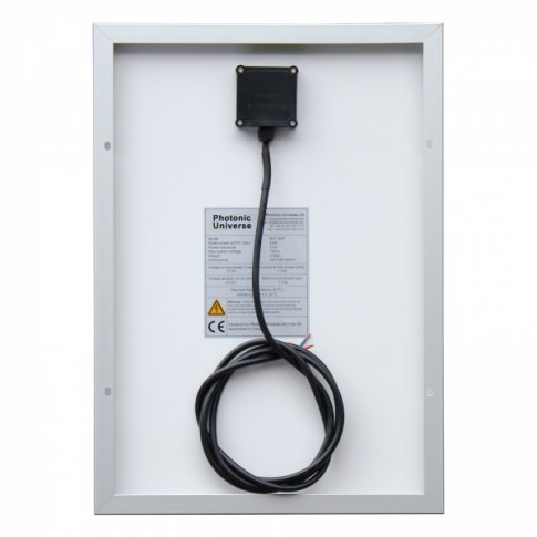 The panels each come with 2m cable attached to the waterproof junction box on the back. Please note that the junction box protrudes approximately 0.5cm beyond the frame, which means that there must be some space left between the frame and flat surface when mounting each panel (note 1.0 – 1.5cm space under each panel is typically recommended for cooling).
