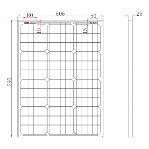 The panel is fitted with 5m of special solar cable which can work at high roof temperatures, with minimum power losses. A pair of male / female MC4 connectors are crimped on the end of cable for easy connection to other solar panels, extension leads or to your existing system (the MC4 connectors can also be cut off when wiring to the screw terminals of a solar charge controller).