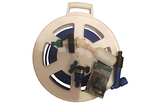 The Flat Hose with reel is nice and compact, ideal for storage in the Motorhome, Caravan, on a Canal Barge or a Boat.
