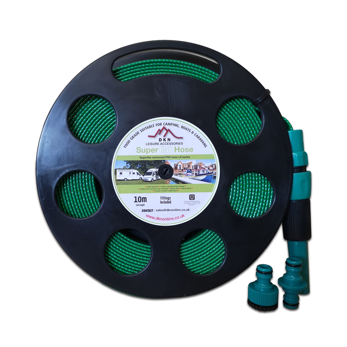 Flat Garden Hose comes on its own reel (various colours and sizes) so that it is nice and compact, ideal for storage.